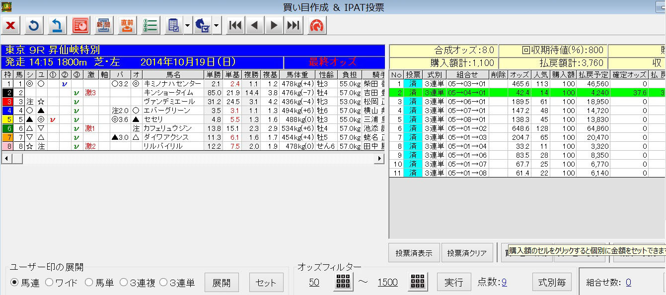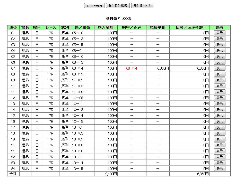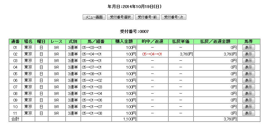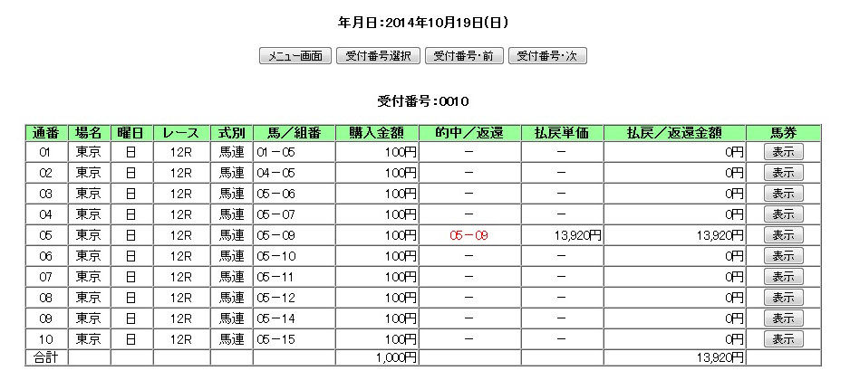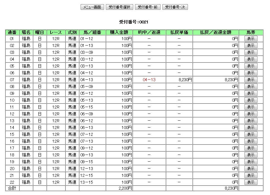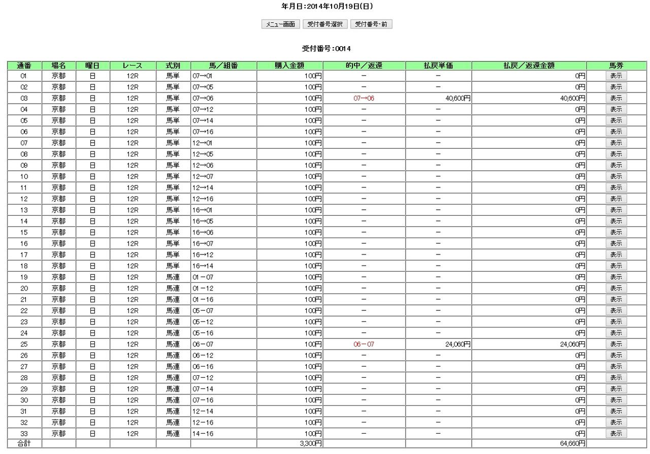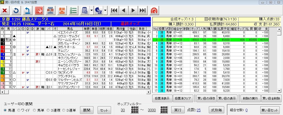 もし均等払戻設定で買っていたら、この買い目に300円の投入で1万2000円のバック。約1万円弱はプラスになっている計算。