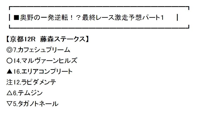 最終の神・奥野さんの推奨レース。