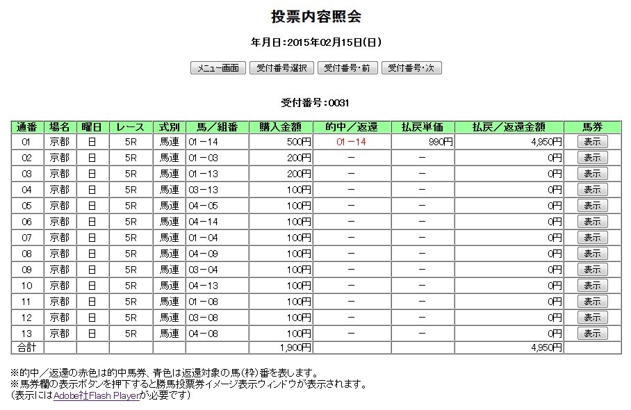 結果、極軸が買ったものの、相手が1番人気で、馬連990円。