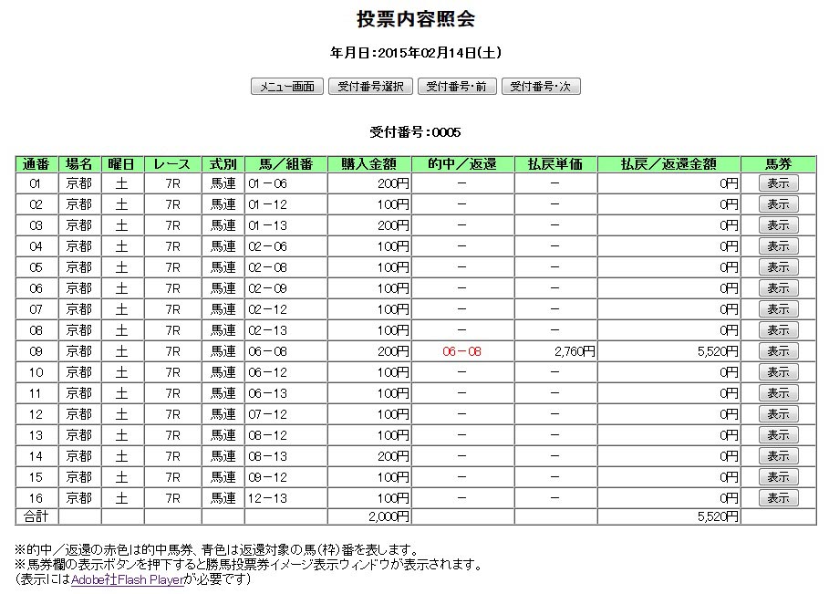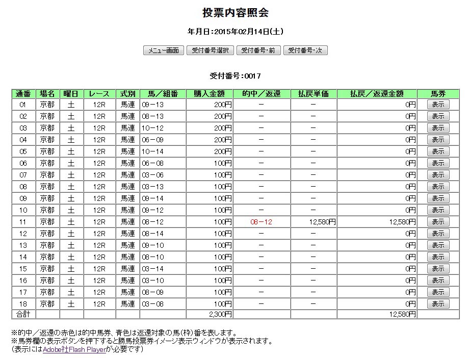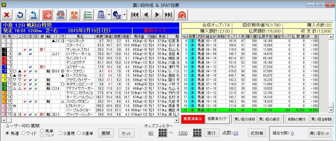 買い目は多くなったけど、20点で合成オッズ7.8倍なら悪くない。