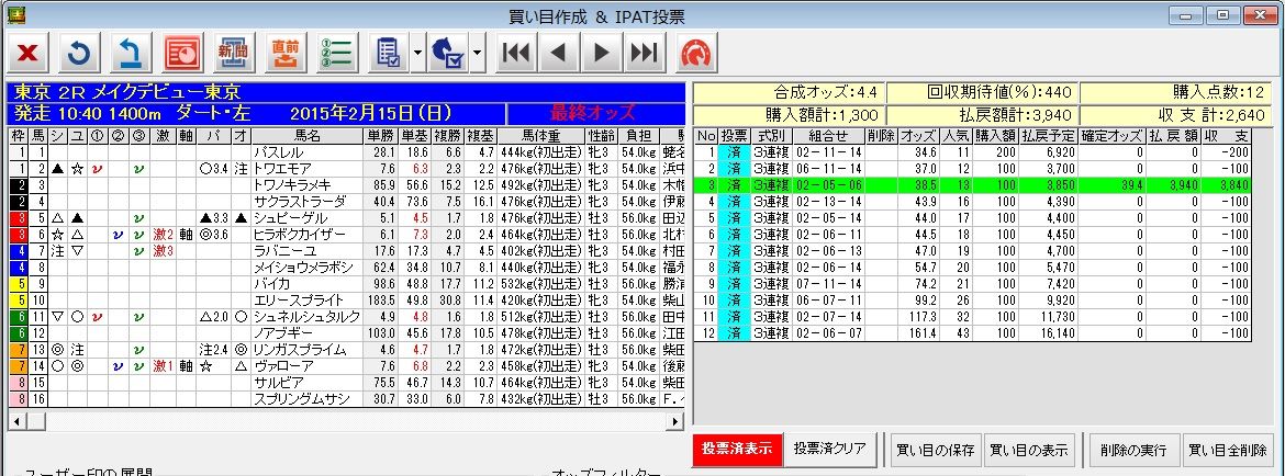 このように、馬券モンスターにおける最適な買い目作成方法と券種を模索中…。