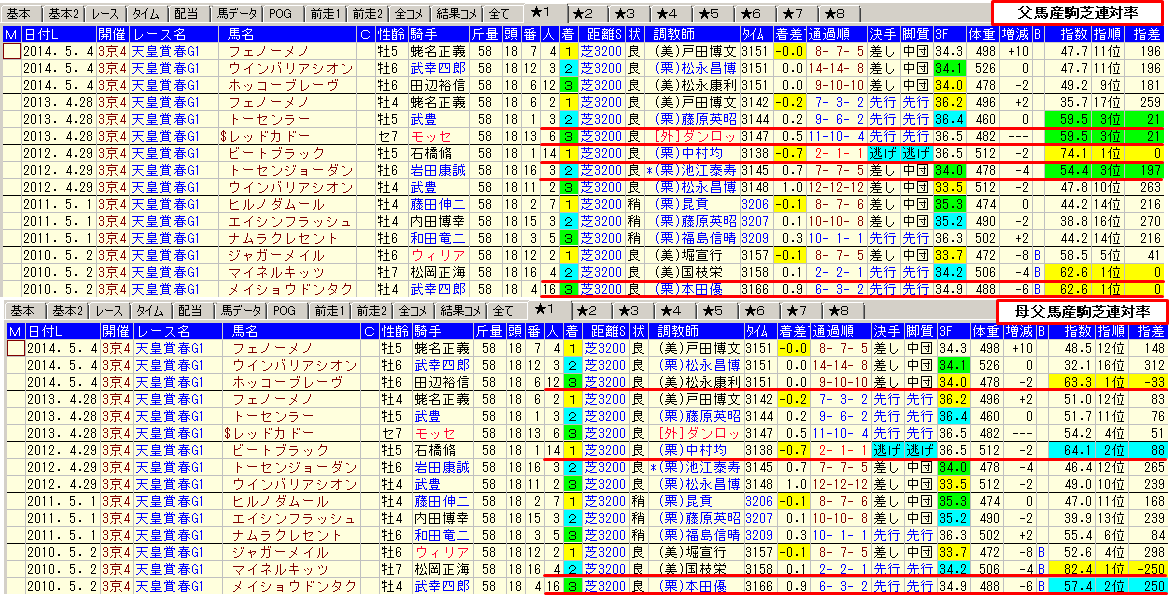 最後に穴馬を探すなら父馬産駒芝連対率と母父馬産駒芝連対率はチェックしておきたい。
