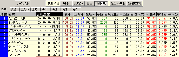 今週の日曜日は、雨が少し降りそうな気配が漂っていますが、もし、良馬場となり、先週同様に高速馬場での開催となりそうなら、速度指数などの展開系指数を重視してみてください。
