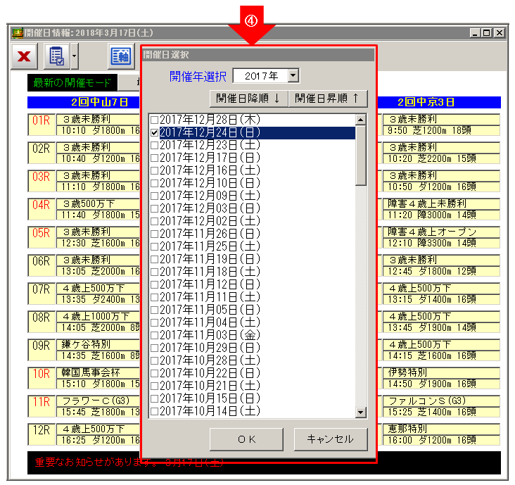 以前のバージョンでは、過去レースを閲覧できなかったため、